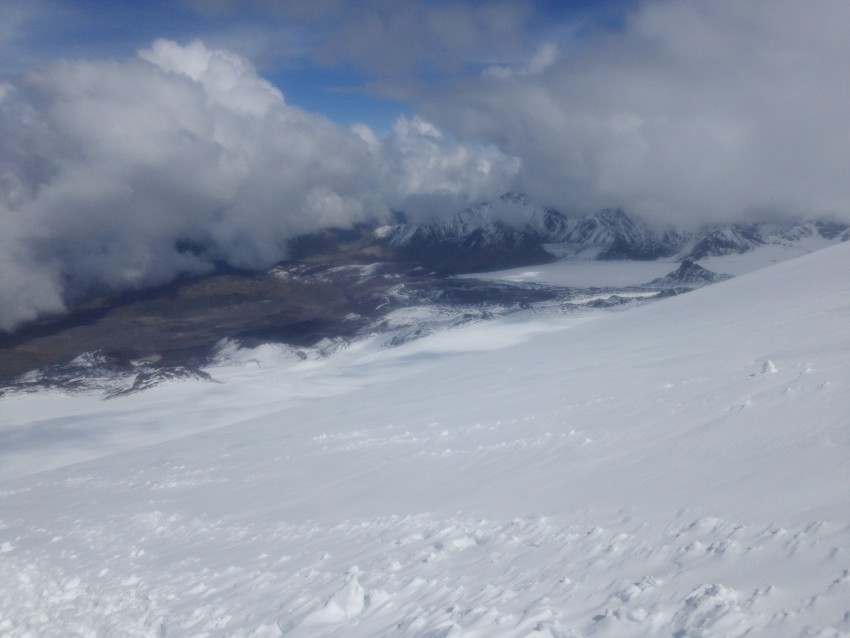 В 17.30 вернулись с неудачного выхода на акклиматизацию. В 18.30 погода уже была очень хорошая, облака осели ниже 3000 м.