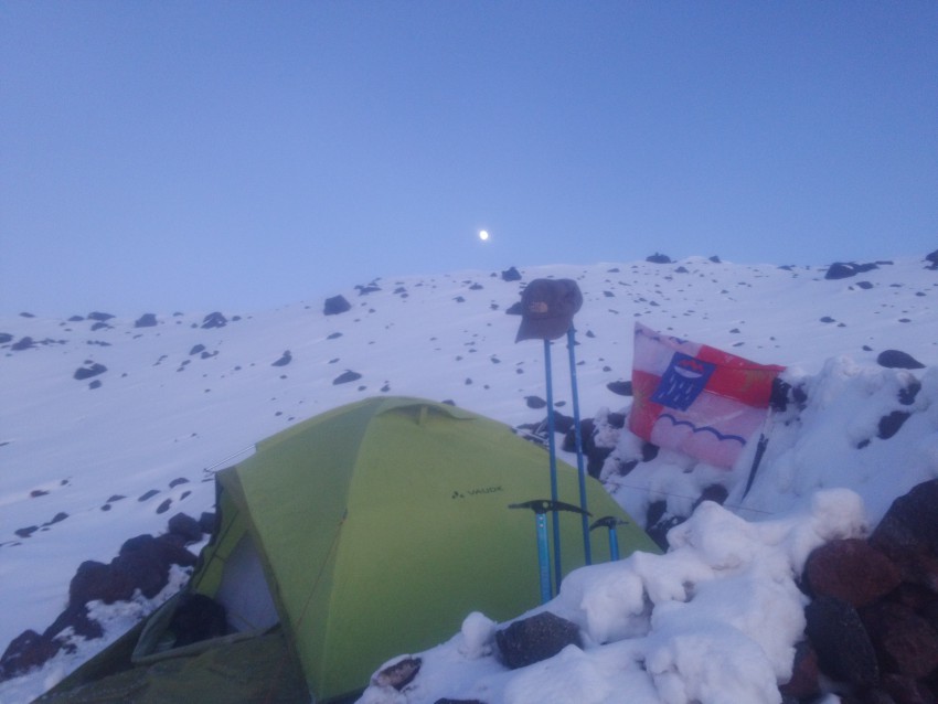 В 22.00 мы достигли базового лагеря. Наши ребята уже спали. Они не ожидали нас увидеть уже сегодня. Думали мы не пойдем по темноте. Но они ошиблись. Дорога хорошо известна и читаема, плюс налобные фонарики, плюс прекрасный фонарь Луна – ну чего бы не идти. Погода при этом