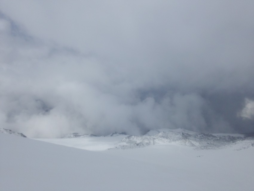 МЧС передало сообщение о штормовом предупреждении. После прохода «немецкого аэродрома» непогода усилилась. На высоте от 3200 начался очень сильный ветер и снег. Температура начала стремительно падать.