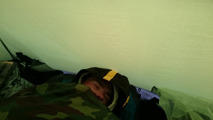 После ужина еще некоторое время я не ложился, подготавливал снаряжение. Легли в 21.15, но уснуть я так и не смог опять. Чувствовал себя хорошо, но спать все-таки надо. Но почему-то никак не мог нормально улечься.