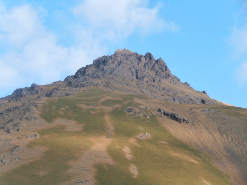 Путь проходил через «дышащий на ладан» мост через речку, мимо базы МЧС и приюта некой туристической фирмы, правее — на хребет. Слева остались нарзанные ванны — мы там набрали водички. Еще один источник находился недалеко от наших палаток в базовом лагере. Оба с очень вкусным, настоящим нарзаном.