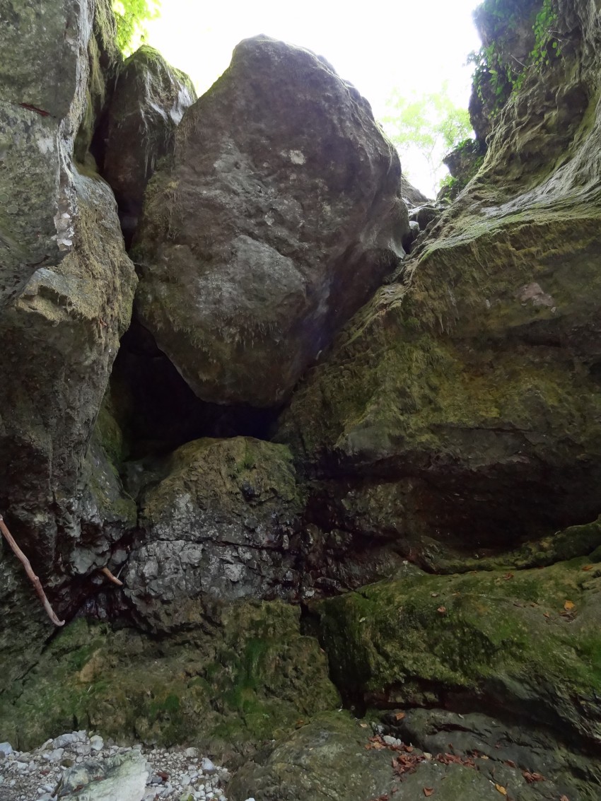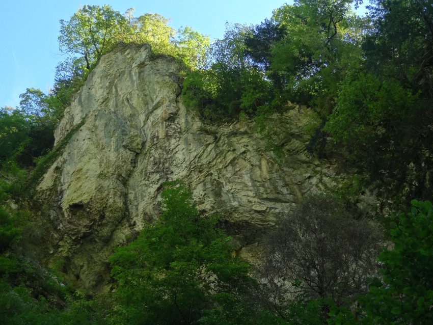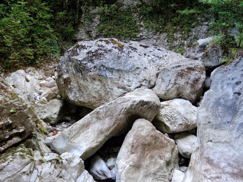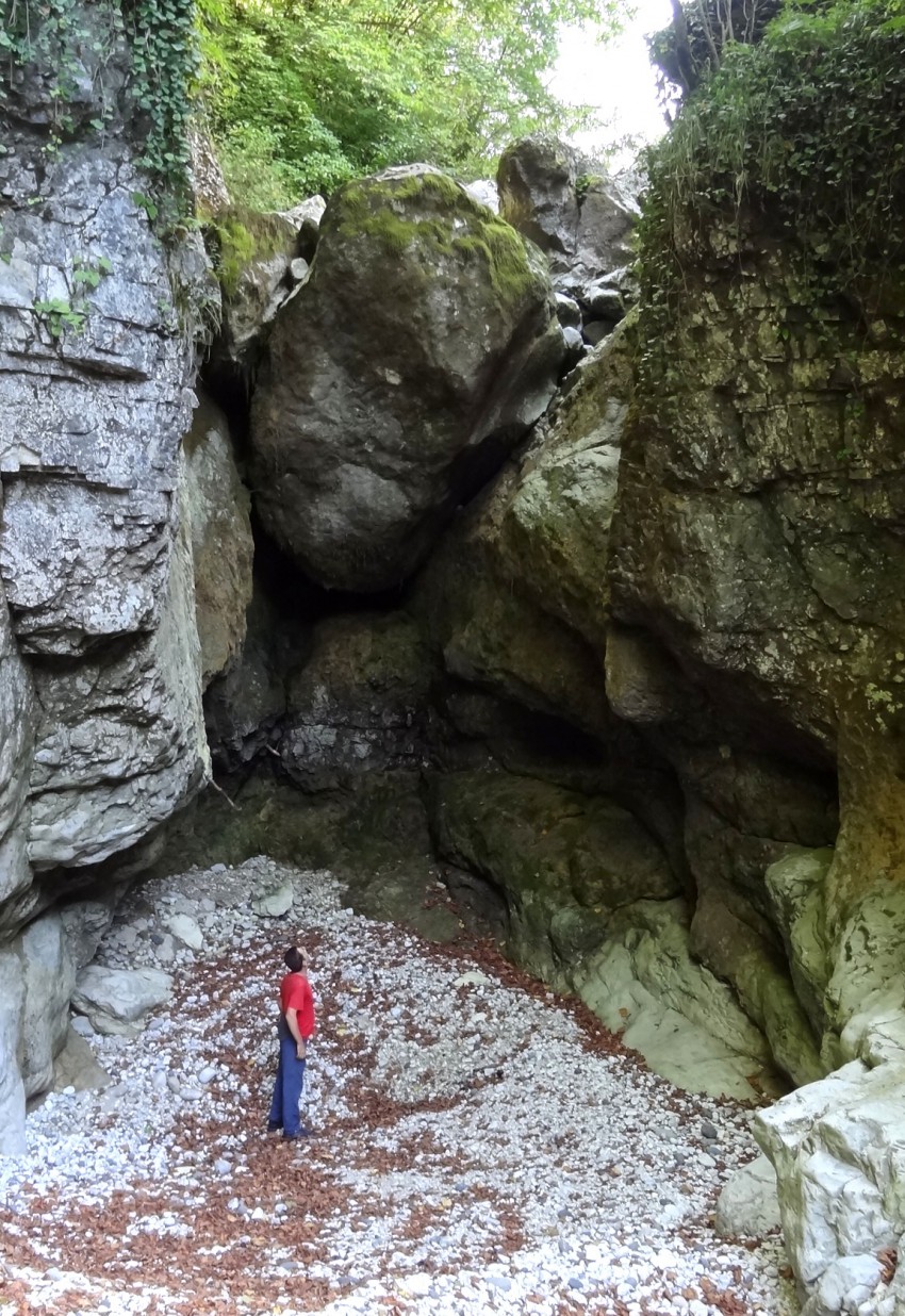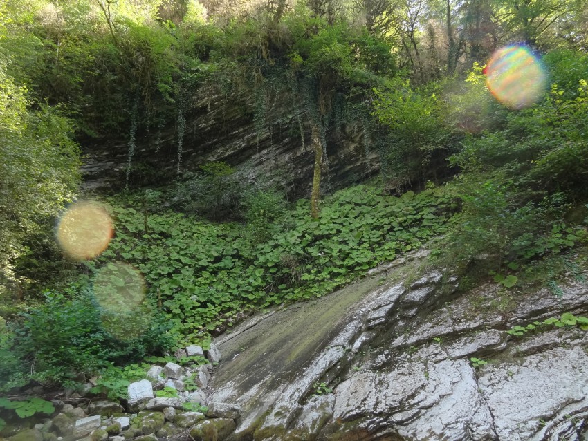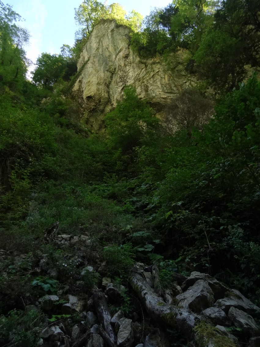 Прошли в два раза дальше, и уперлись в каменный завал — пересохший водопад
