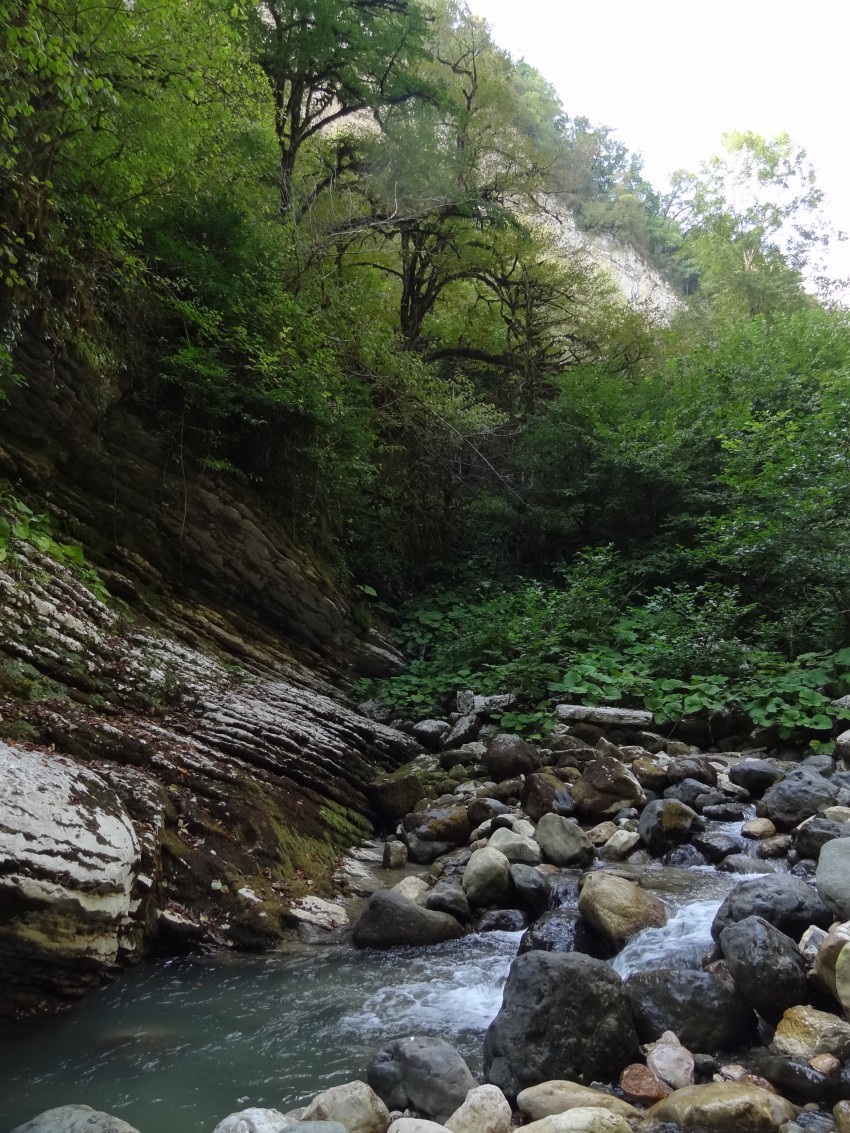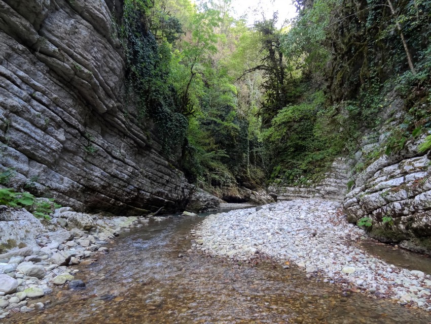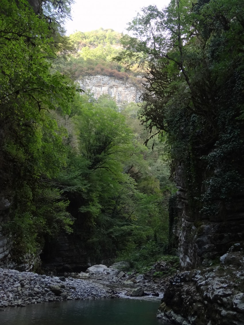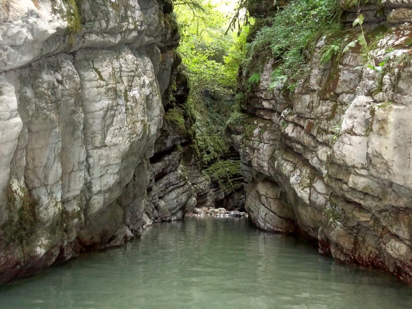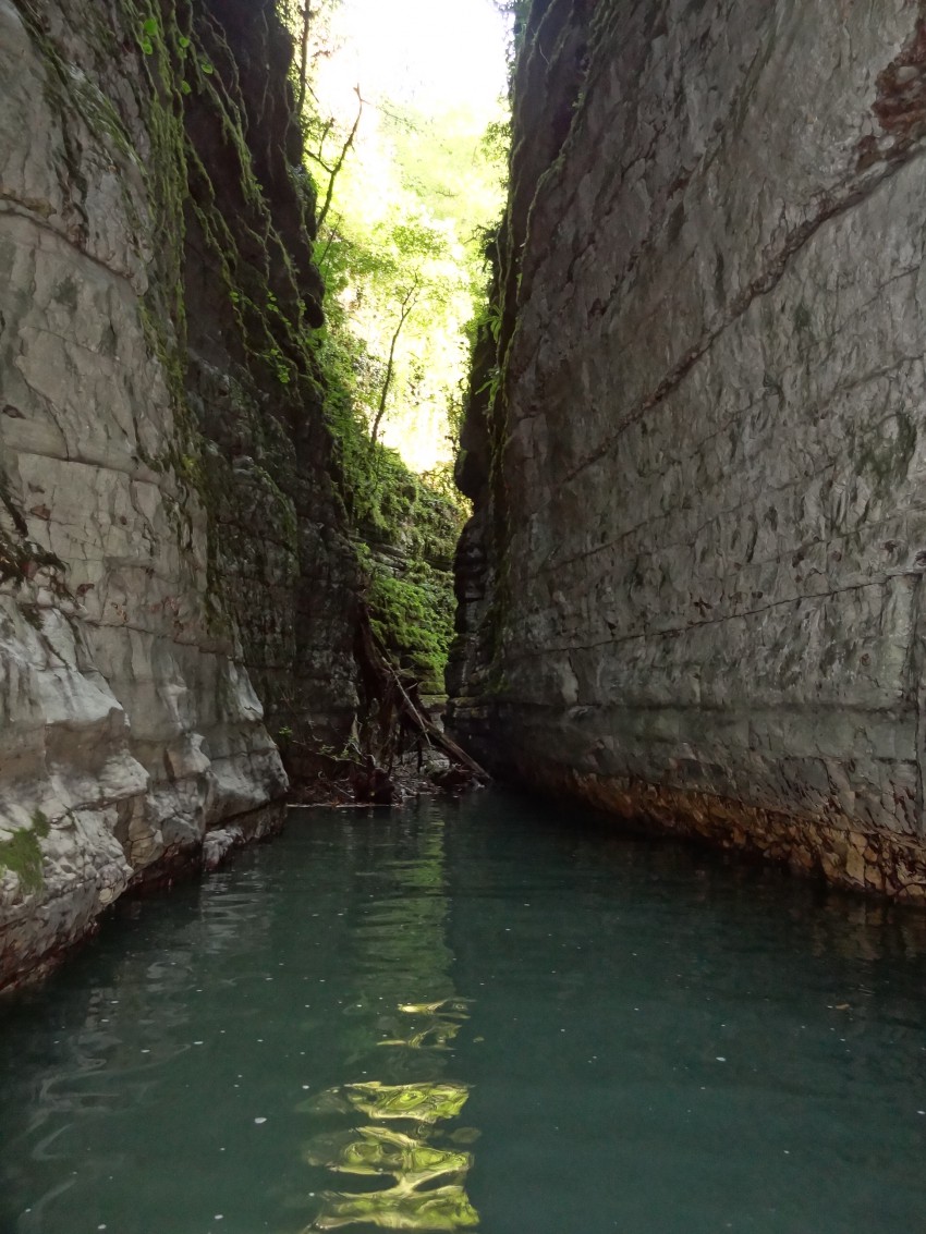 К началу каньона по реке подвозят туристов, поэтому вода не такая чистая, но теплая