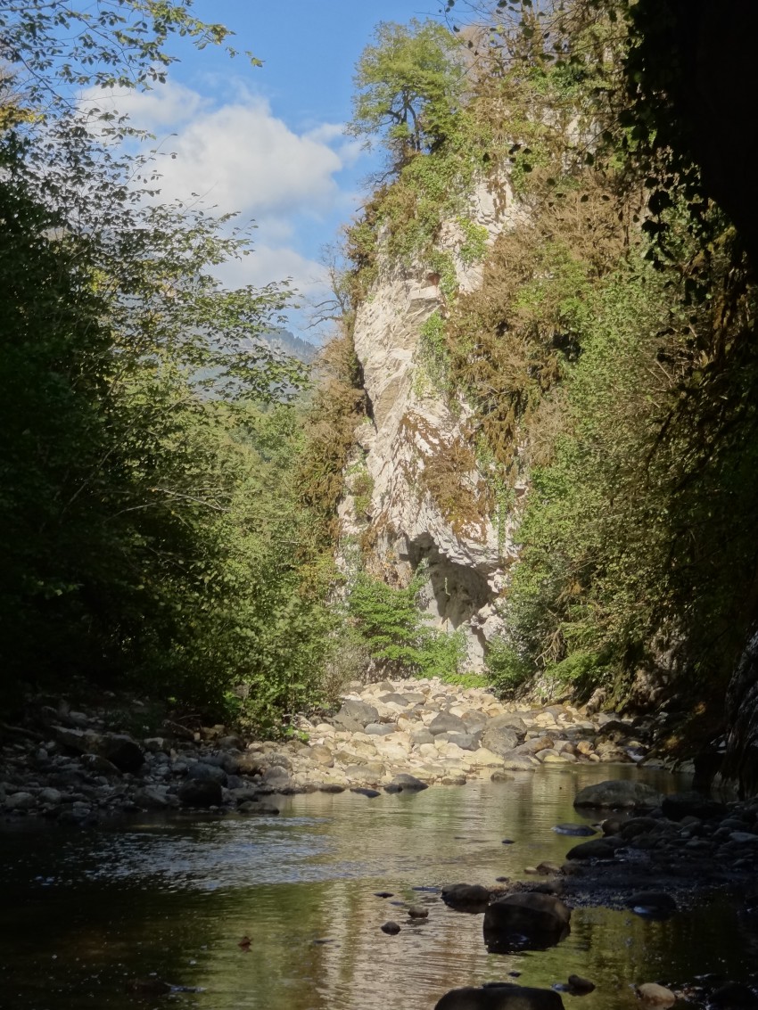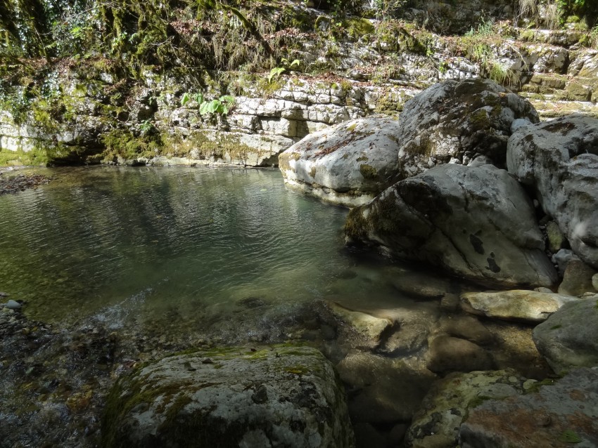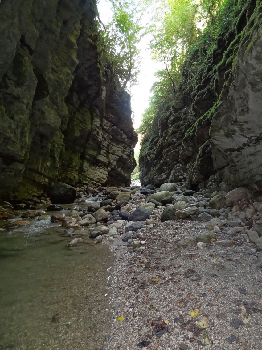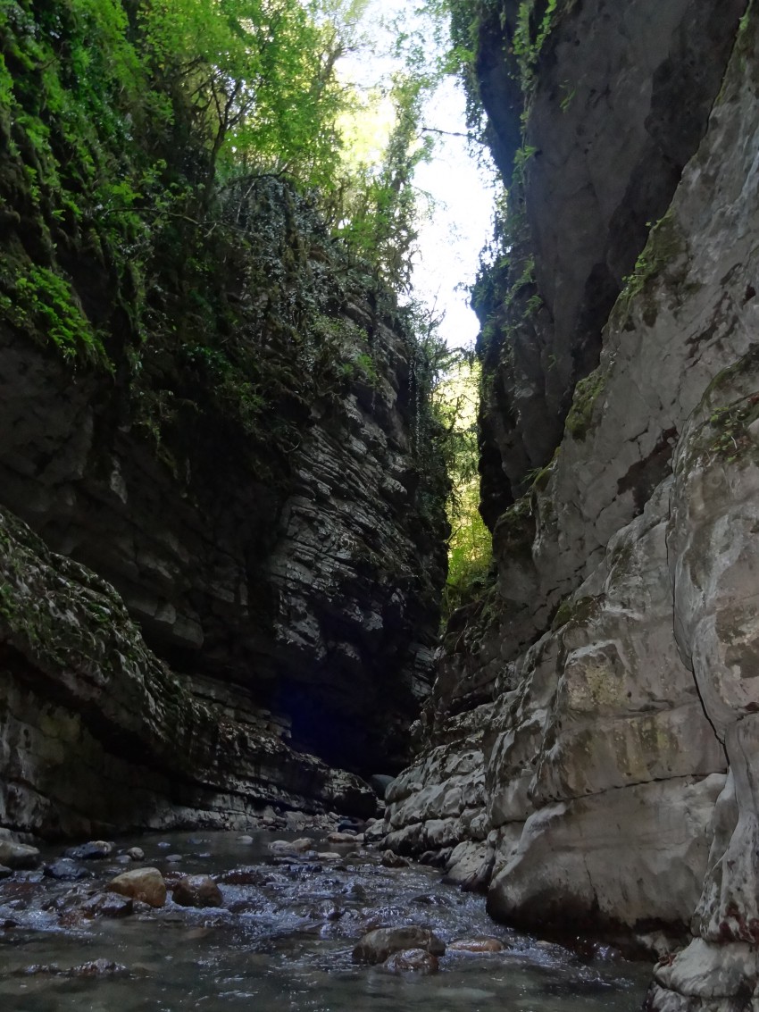 К началу каньона по реке подвозят туристов, поэтому вода не такая чистая, но теплая