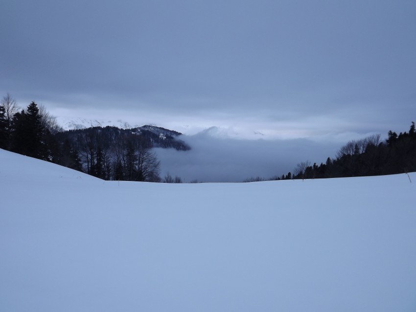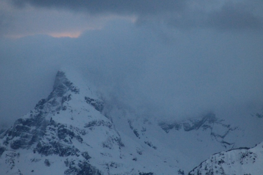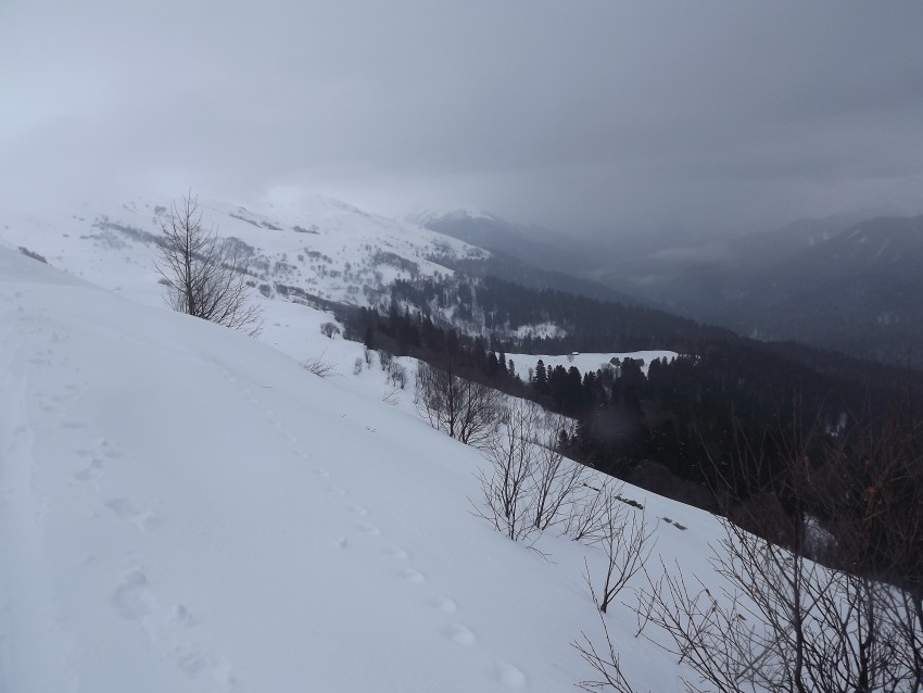 Постепенно небо затягивает и начинается снег. Жалко конечно, но нужно идти вниз.