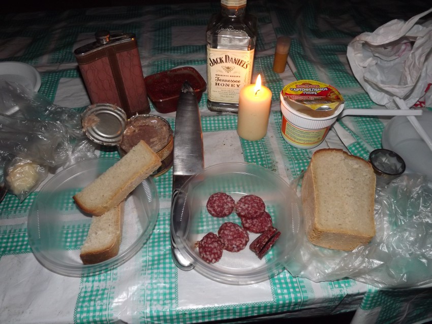 Сажусь ужинать. Стол конечно не такой, когда путешествуешь на машине, Но и