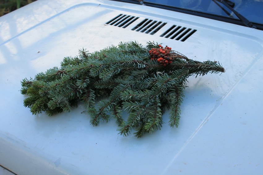 лапник с пихты, больше метра толщины, поваленной ветром, какой запах весь Новый год…