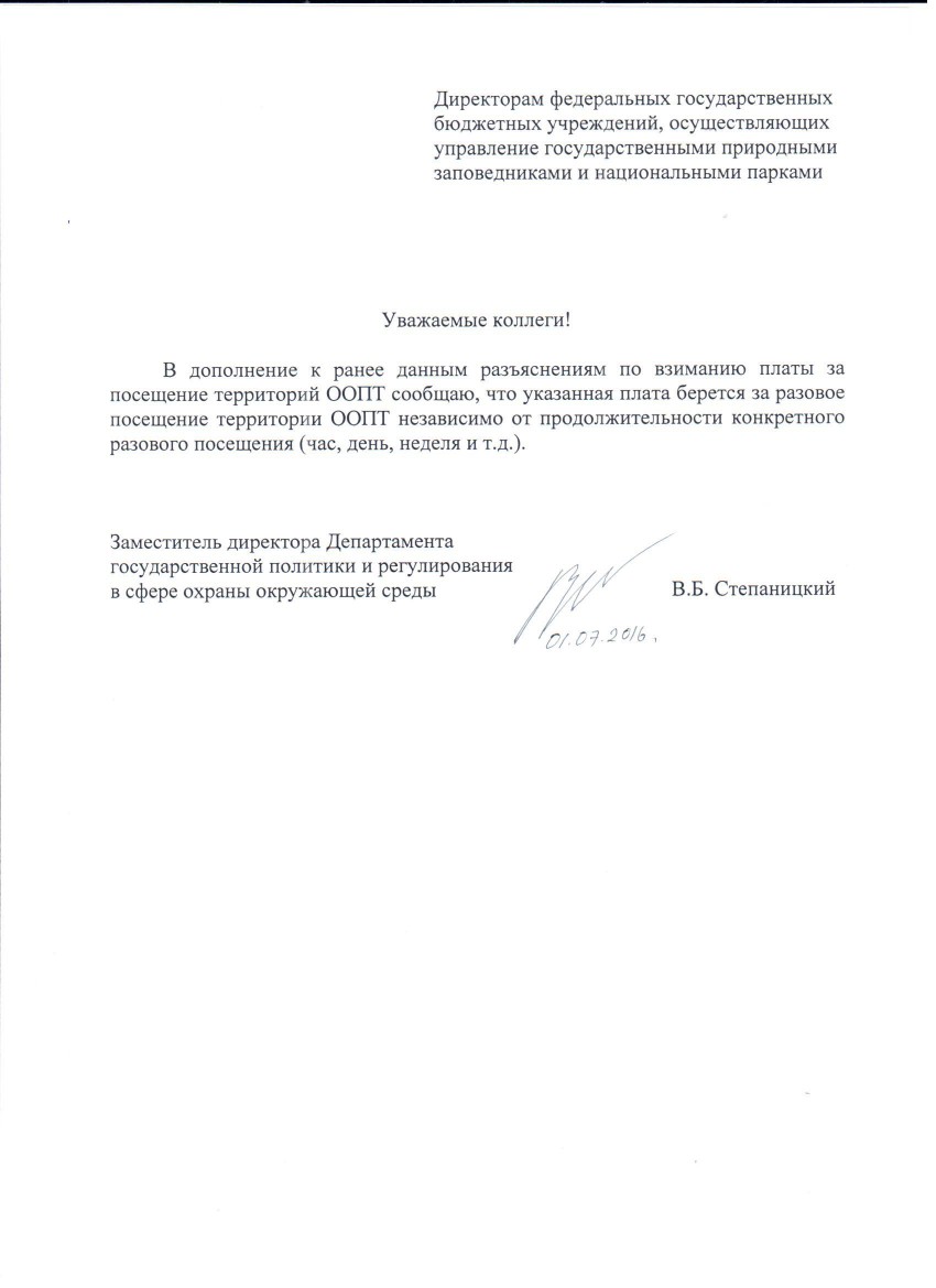 Приказом Министерства природных ресурсов и экологии Российской Федерации «Об утверждении Порядка определения платы, взимаемой за посещение физическими лицами территорий национальных парков в целях туризма и отдыха» №174 от 08.04.2015г.