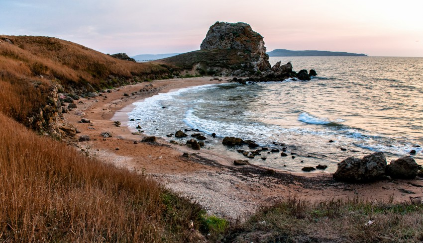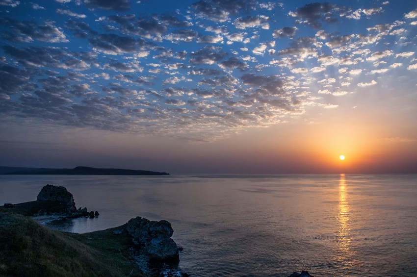 Вот эта вот предзакатная фотография со спокойным морем может являться олицетворением этого чудесного места