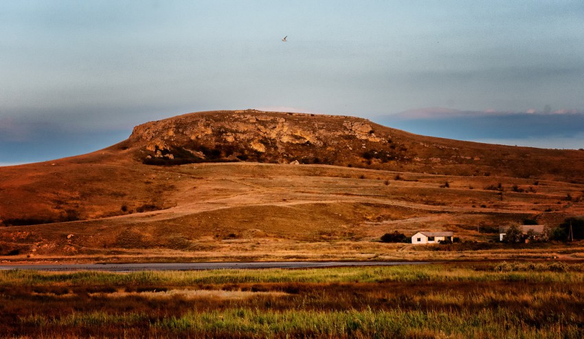 В самом начале Крымского п-ва под гор. Керчь, на берегу Азовского моря находится замечательное место — поселок Курортное, деревня-деревней, но оч. притягательное для пешего туриста, любящего потаскать с собой пару кг фото-оборудования :)