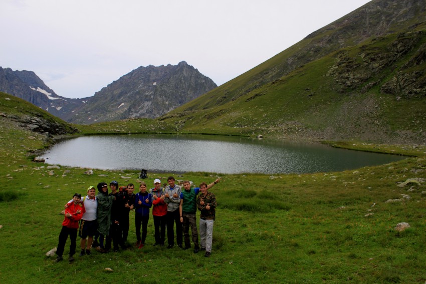 Подъем был в пять утра, на улице было еще совсем темно и холодно и организм никак не хотел просыпаться, но, собрав волю в кулак, пришлось вылезти из палатки навстречу новым впечатлениям. Быстро позавтракав, мы отправились к Бирюзовым озёрам, которые находились от нас в пяти километрах на высоте 2538 м. Поначалу тропа была хорошо видна и промаркирована, до балагана, а далее тропу пришлось, можно сказать пробивать самим, высокая мокрая трава значительно уменьшила скорость нашего передвижения, ноги то дело и ускользали вниз, часть пути пришлось преодолевать чуть ли не на четвереньках.