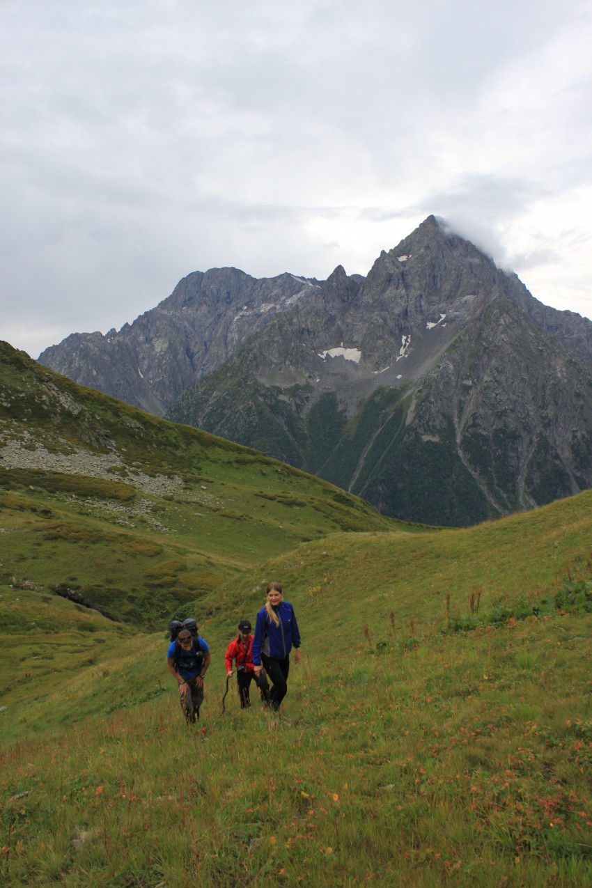 Высочайшей точкой маршрута в первый день был сам перевал Аишха (2405м), несмотря на свою значительную высоту пер. Аишха не обладает завораживающей красотой, сплошь одни альпийские луга…