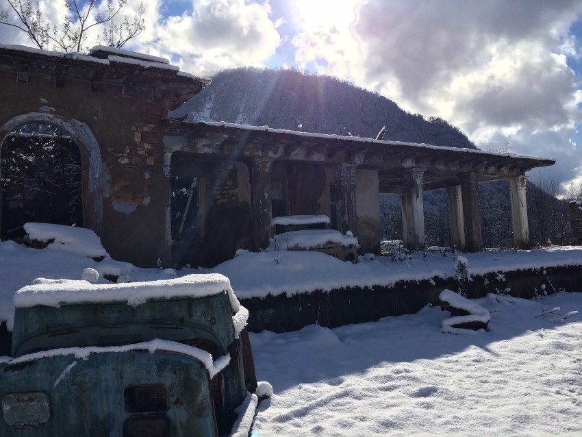 Между Ткуарчалом и Акармарой мы встретили заброшенную промежуточную ж/д станцию, названия, к сожалению найти не удалось.