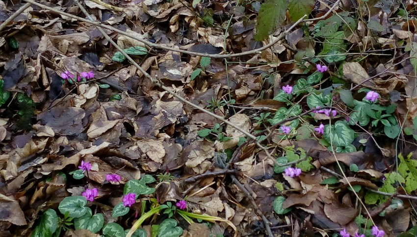 Первоцветы сплошным ковром. Цикламены, морозник, пролеска.