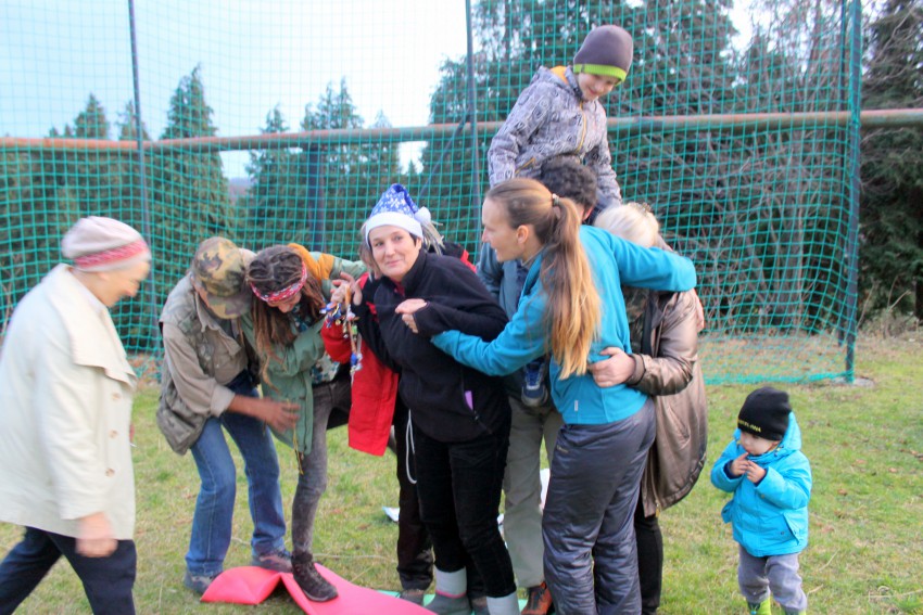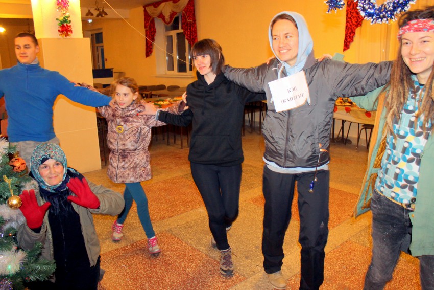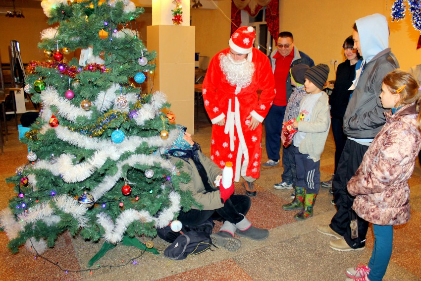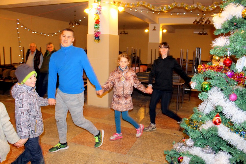 По русскому обычаю пустились хороводом вокруг ёлки. Танец дружбы.
