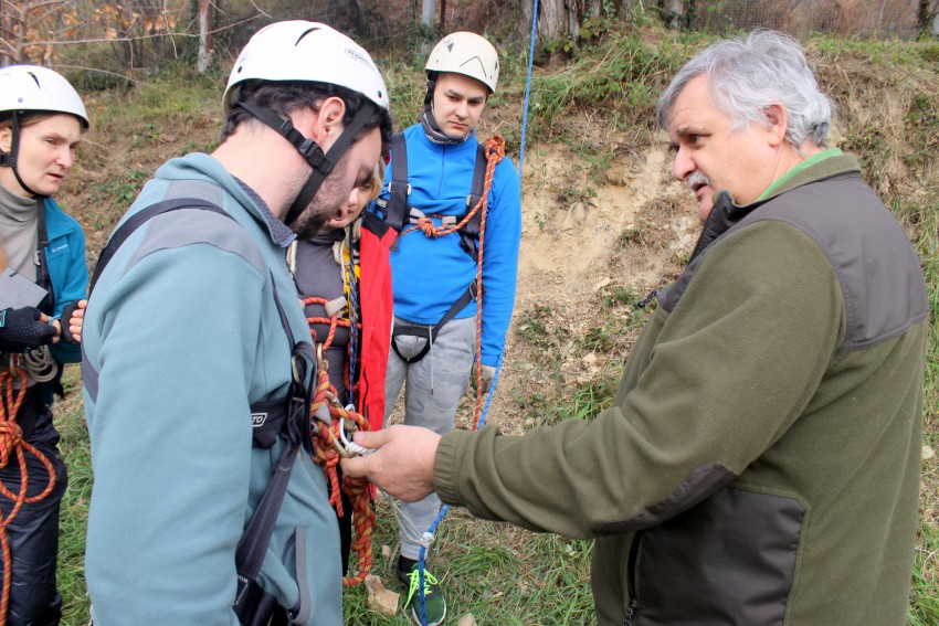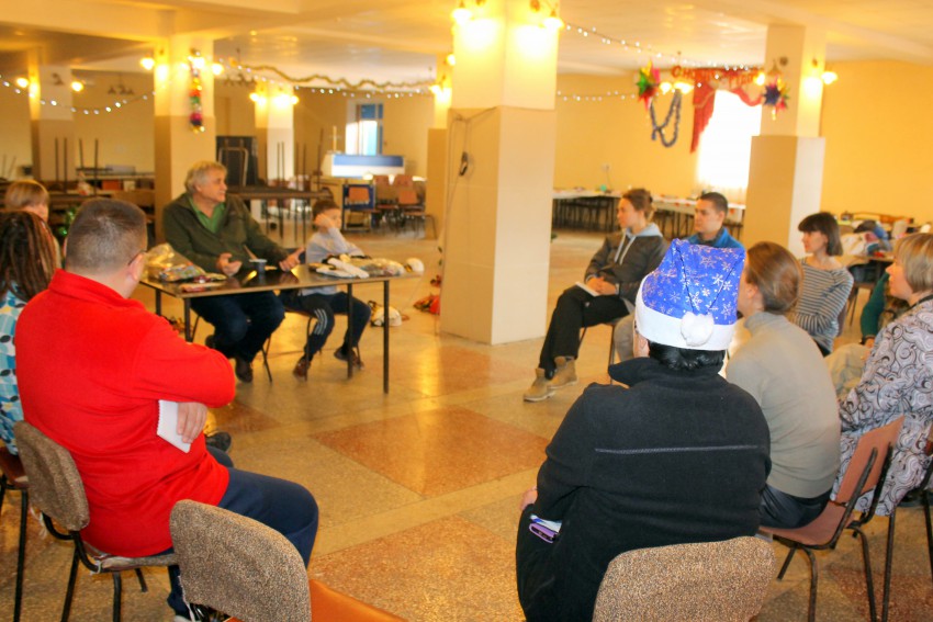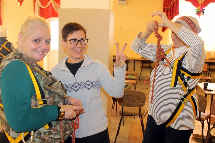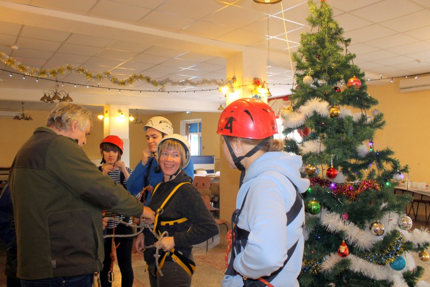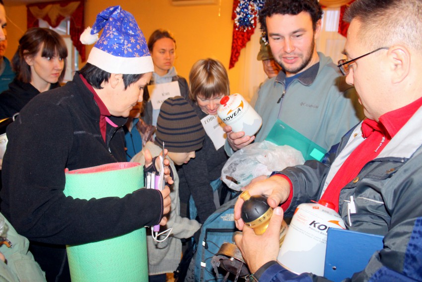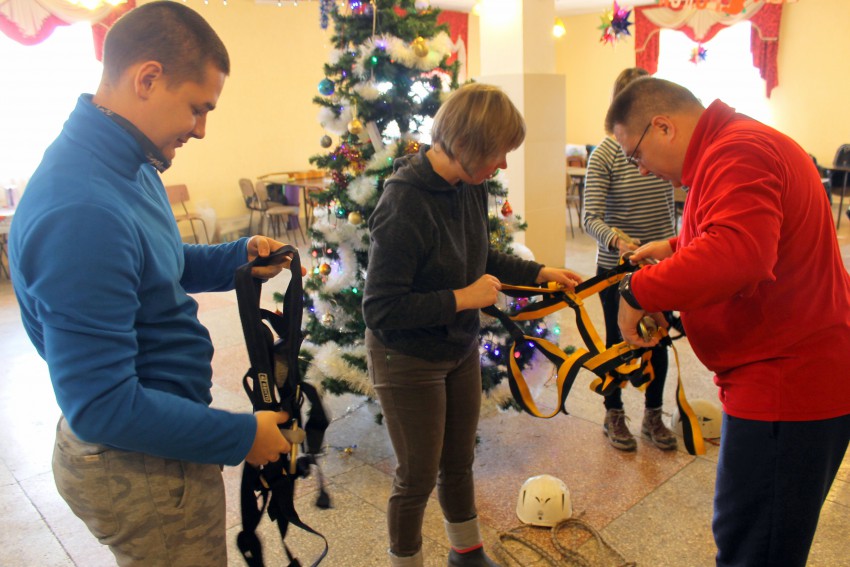 В цокольном этаже Дома Культуры всё началось с планов на сегодня, учёбы в школе туризма и будущих походов. Руководитель клуба рассказал об использовании альпинистского снаряжения новичкам.