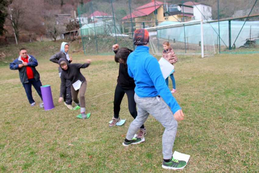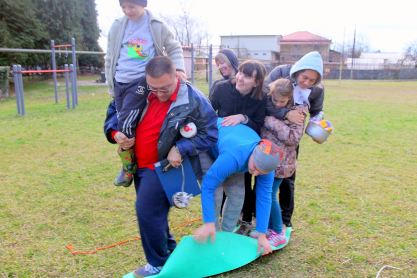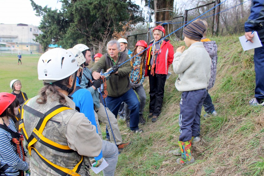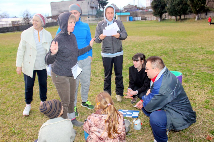 На футбольном поле за Домом Культуры Валерий Николаевич Гоголадзе рассказал как провести учёбу и соревнование по переправам.
