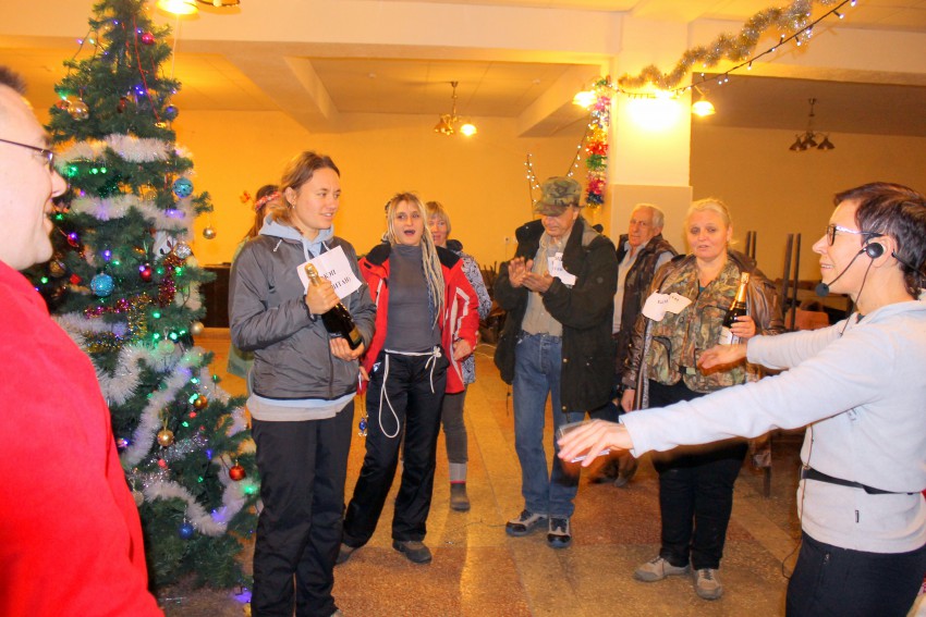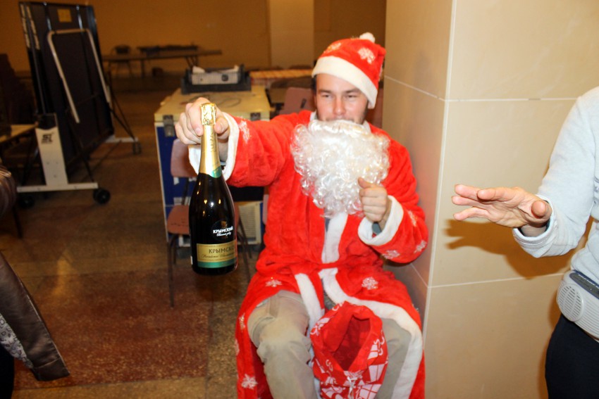 Дед Мороз дарил подарки. Шампанское тому кто станцует, споёт или прочтёт стихи.