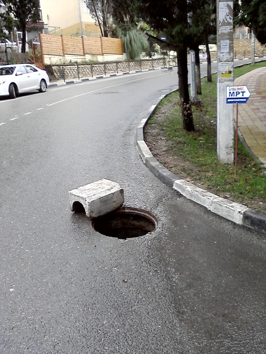 Водители, внимание! На протяжении небольшого участка дороги три(!) открытых люка.
