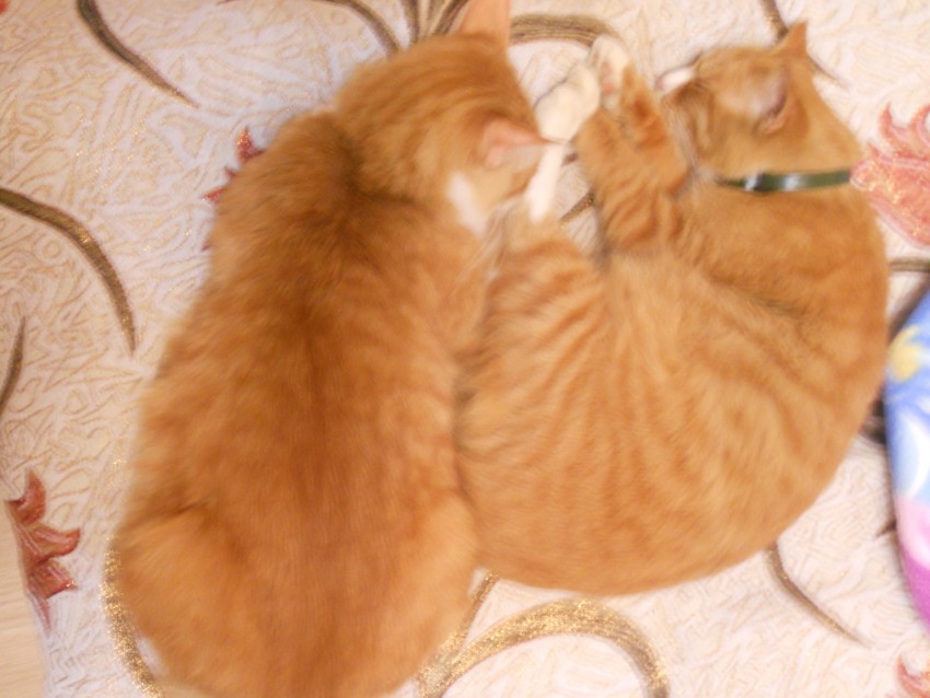 детки совершенно не похожи на маму, тайскую кошку, но очень красивые, сейчас активно изучают мир.