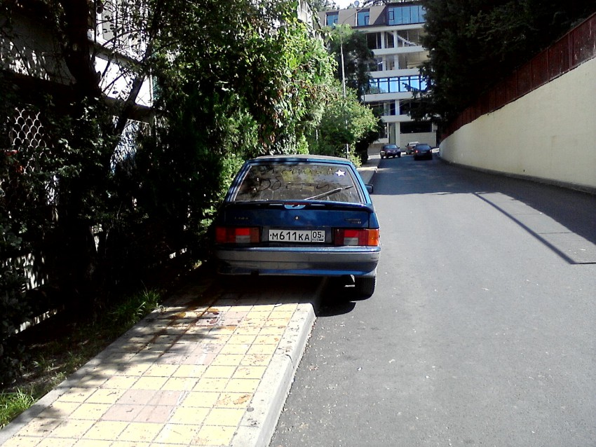 Прямо на тротауре, в двух метрах от многоквартирного дома по ул. Тоннельной, 4 с утра стоит автомобиль ВАЗ 2109 (05 регион).