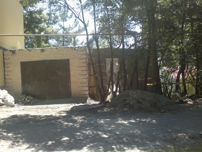 Очередной гараж решил увеличить свои размеры на Мемориале. Рабочие из Средней Азии потихоньку возводят пристройку к нему, а затем, видимо, и второй этаж. Гараж расположен вблизи «печально» известного всем дома наверху Мемориала. Кстати, два оставшихся этажа этого дома до сих пор прячутся за баннерами и не похоже, что их собираются сносить.