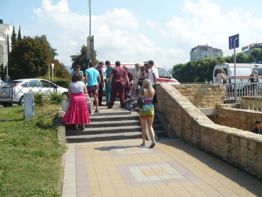 Сегодня около двенадцати часов дня, я проходила по ул. Чайковского. Вдруг, возле подземного перехода, что на Кубанском кольце, пожилой женщине стало плохо и она, потеряв сознание, со всего маху упала на тротуар — сильно повредив голову.