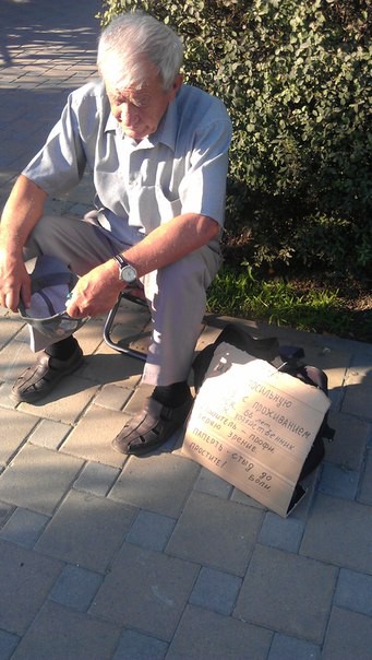 Сегодня, возле перехода на остановке «Сбербанк» сидел человек, не знаю как зовут, успела только взять номер телефона и на его глазах сделать крупным планом фотографию его таблички, после чего позвонили по работе и я отвлеклась, чз 2 минуты на том месте его не обнаружила.
