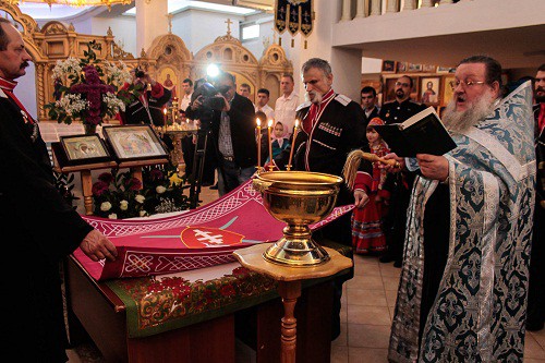 В праздничный день 4 ноября, если кто не знает, то это День иконы Казанской Божьей матери, в казачьем обществе «Бытха» случилось замечательное событие — освящение знамени общества и принятие в свои ряды новых казаков. На церемонию пришли и казаки из других обществ, и родственники казаков, и казачата из казачьего класса.