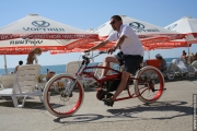 На проходящем в Сочи фестивале SurfYogaFest в числе прочих активностей (обучение серфингу и семинары по йоге, паркур-площадка, полоса препятствий от «Мастерской приключений», джиб-контест, ночные тусовки), была возможность поучаствовать в тест-драйве велосипедов с электроприводом фирмы PG Bikes. Ребята привезли несколько велосипедов, характеристики которых впечатляют не меньше чем дизайн — некоторые модели развивают скорость до 100 км/час. Идеальное средство передвижения для Сочи. Есть модели с ручкой «газа», а есть гибридные, где скорость развивается от вращения педалей. Заехать на таком на Ахун — легко :-)