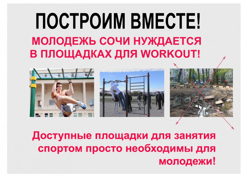 17 октября 2015 года в Сочи при поддержке Министерства спорта РФ, ФЕДЕРАЦИЯ ВОРКАУТА РОССИИ, Спортивная Организации «Клуб Спарта» пройдет отборочный этап «Кубка России по WORKOUT в Сочи.