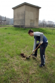 сложности возникли с выкапыванием лунок — очень много камней… пришлось парням нашим орудовать ломом… камни речные… в перемешку с нормальной землей…