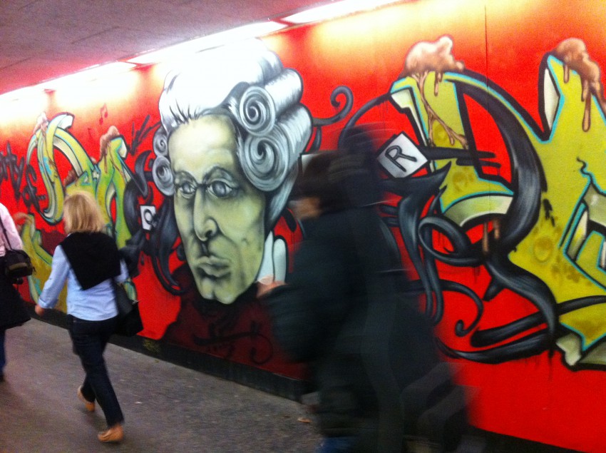 В этом городе Моцартов больше, чем людей. Композитор в белом парике смотрит на горожан с памятников, витрин магазинов, обёрток конфет. Его же портрет украшает подземные переходы.