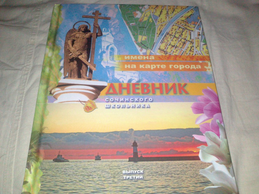 Я так понимаю что это программа муниципальная. На каждом развороте написаны улицы Сочи в честь знаменитых людей и их история. Карта Сочи, герб, флаг история. Так же и край.