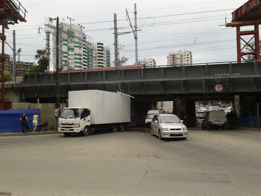 Очерендной иногородний, на этот раз 161RUS, не смог проехать под аредовским мостом. Сколько ещё нужно застрявших грузовиков чтобы там предприняли какие-то меры?! Можно конечно сказать типа водители невнимательные или сами виноваты в том, что не знают высоту своего авто, но если ты уже повернул к мосту и увидел знак с ограничением высоты, то развернуться весьма проблематично на крупногабаритном транспроте, тем более когда сзади уже скопились машины… К тому же авто как правило служебное и расплачиваться за помятую машину приходится водителю.