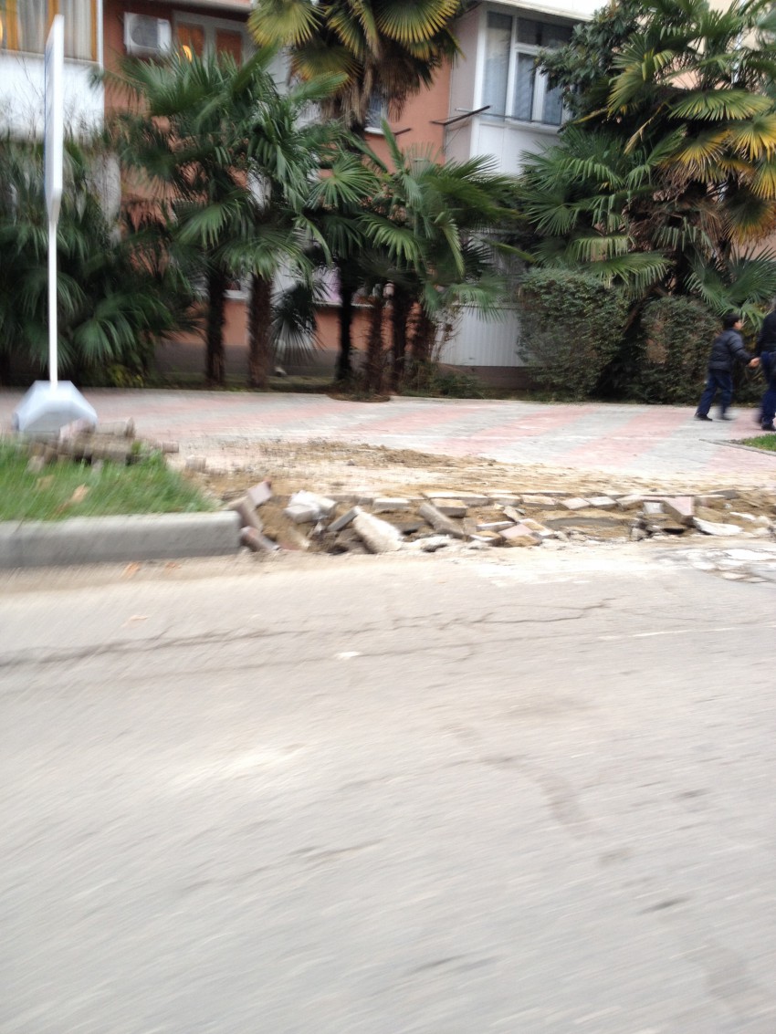 В Хосте на всех улицах меняют часть тротуаров. Убирают плитку, и заливают бетоном, образуя пандус.