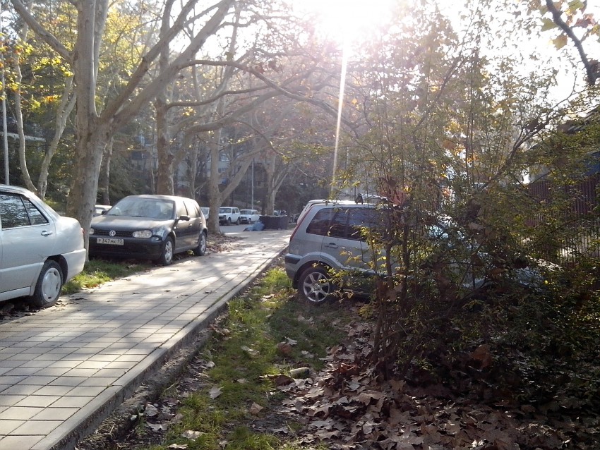 Парковка по сочински.(между деревьев еще есть местечко и для вашего авто)ареда около роддома