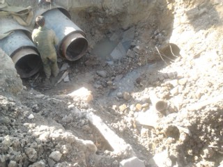 Котлован перед магазином «Комфорт». Водичка бежит в сторону реки.