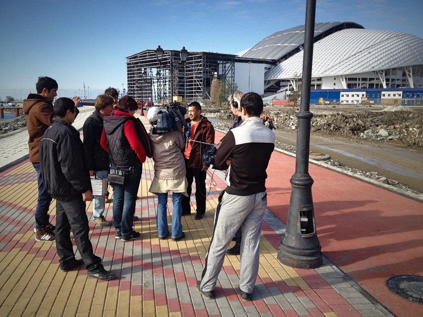 Квалифицированный иностранный специалист, старший смены строителей гостиничного комплекса в #Сочи дает интервью ТВ, работа все.