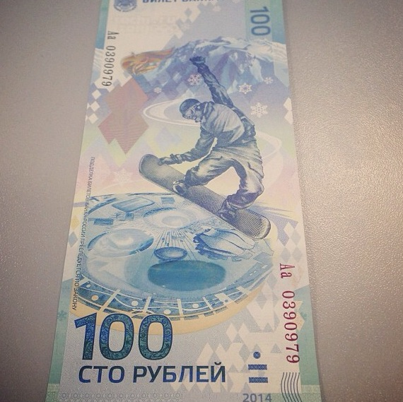Сестра работает в Сбере, прислала фотку. Олимпийские сотни уже в сочинских банках.