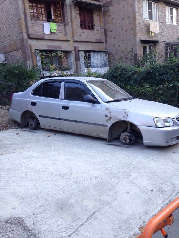 Колеса еб… ли ночью у соседа. Так еще и на брюхо посадили машину. Пи… ц…