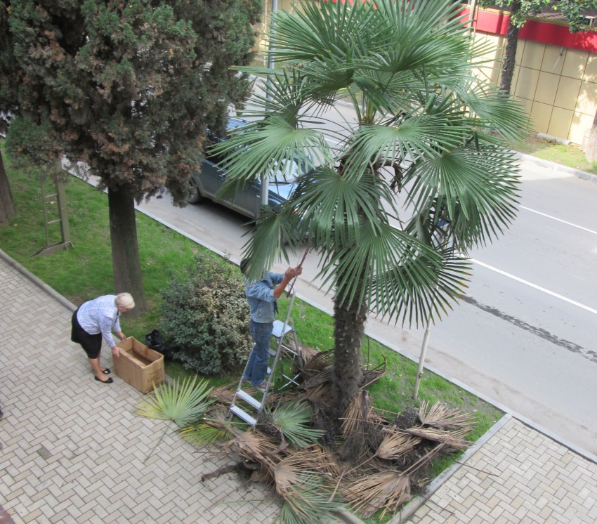 На Мамайском посту ГИБДД высадили пальмы, озеленяют… Как раз на том участке, где всегда улетают машины под откос. Бедные пальмы.
