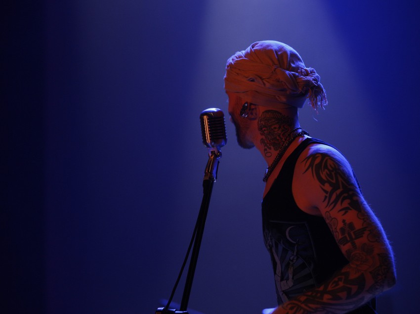 Певец улицы у супемаркета «Перекрёсток