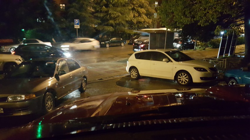 Авария возле ТЦ «Апельсин» Адлер, Тойота с дрифтовыми колесами снесла огромный указатель торгового центра. Выковыривали тойоту три часа.