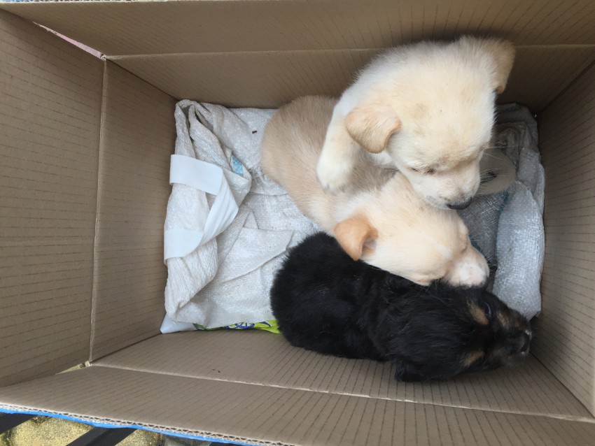В районе МАКС Портала кто-то подбросил 3-х маленьких щенят ( ул.Северная, 12)