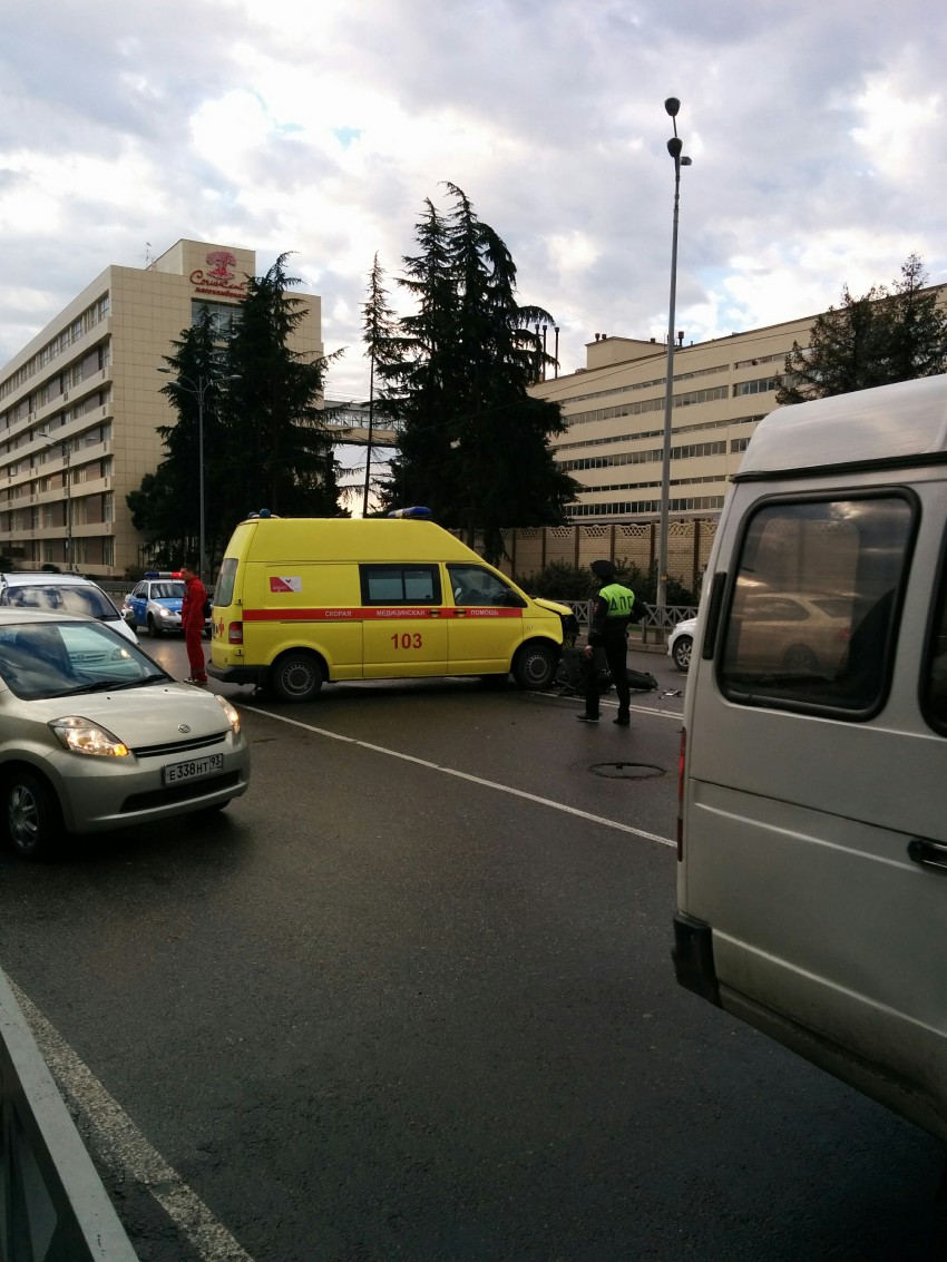 Скорая выезжала из гаража, пыталась повернуть налево через две сплошные. Девушка на белом Шевроле манёвр не оценила.