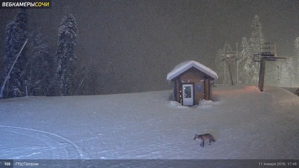 11 января, ближе к 6-ти вечера, в Красной Поляне была замечена лиса. (из соцсетей)