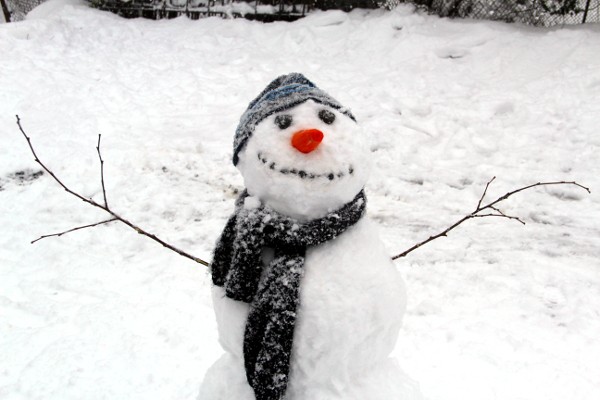 Классический сочинский снеговик, руки — ветки пальмы, рот и глаза — финики с той же пальмы :)