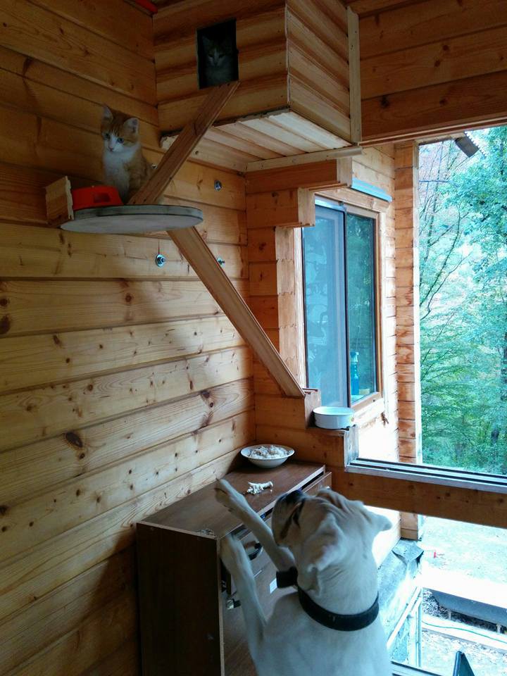 Если у вас есть собака… То домик для котят приходится делать в виде скворечника))