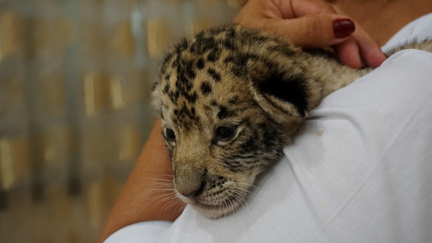 У белого льва Симбы и лигрицы Маруси в зоопарке санатория «Октябрьский», неделю назад родились котята :)